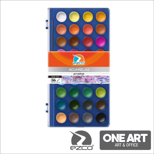 Acuarela Pastilla Ezco Estuche x 36 Colores + Pincel