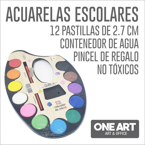 | Modelo | Acuarelas en Pastilla CBX x 12 Colores + Mezclador + Pincel PACK X 12 |