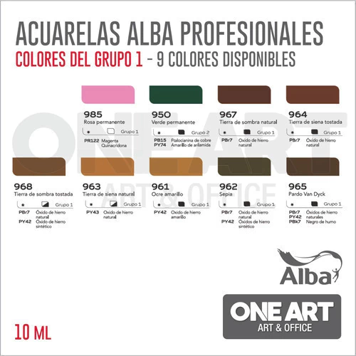 Acuarela Alba Profesional 10ml Grupo 1