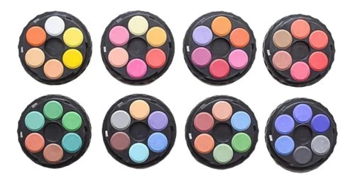 Acuarelas de excelente calidad profesional, incluye 4 discos con 6 pastillas de colores cada disco.