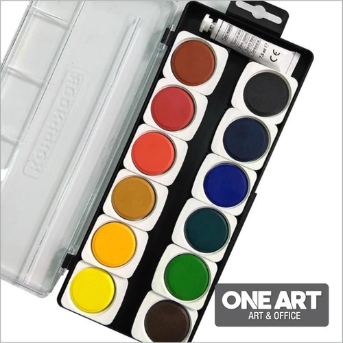 Koh-i-Noor Acuarelas Profesional Set x 12 Opacas, contiene 12 pastillas de 30mm de diámetro, alta calidad de pigmentación y un pomo de decolorante.