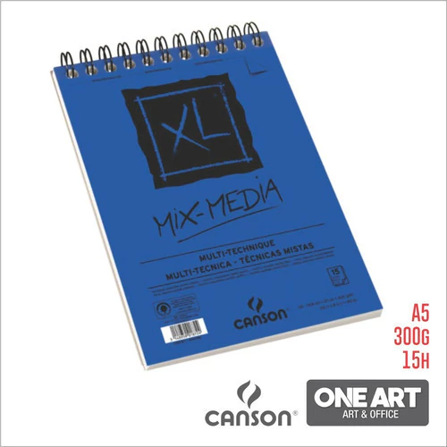 El papel Canson® XL® Mix Media es un papel de grano medio adecuado para técnicas puras o mixtas que usen acuarela, gouache o acrílicos. Cualquier cosa es posible con este álbum todo terreno.