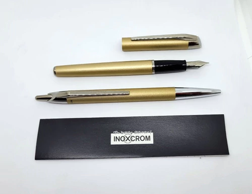 BOLIGRAFO Y PLUMA INOXCROM ACERO DORADO