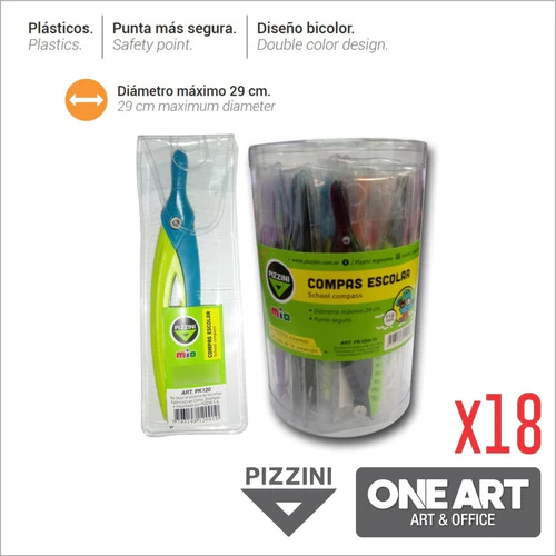 Compas Pizzini Escolar Plastico 120mm Diametro 29mm