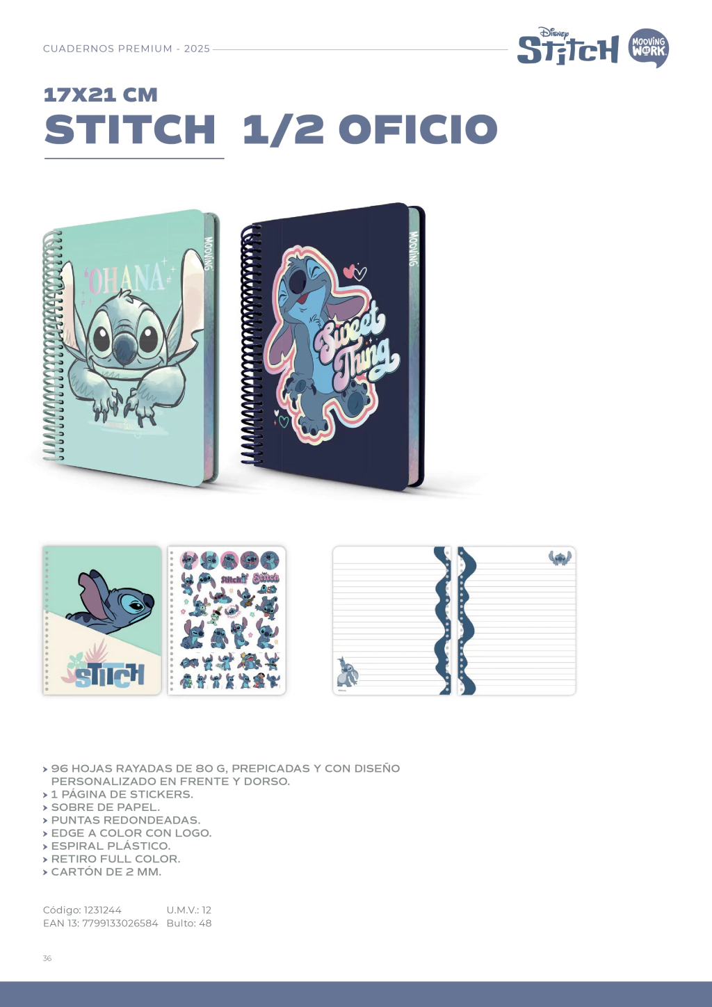 Cuaderno Stitch 1/2 Oficio Premium Mooving