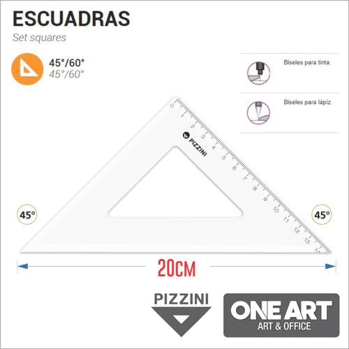 Escuadra Pizzini Acrilico Transparente Escolar 20cm x 45º