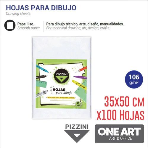 Hojas para Dibujo Pizzini 35 x 50 cm 106g Pack x 100 hojas