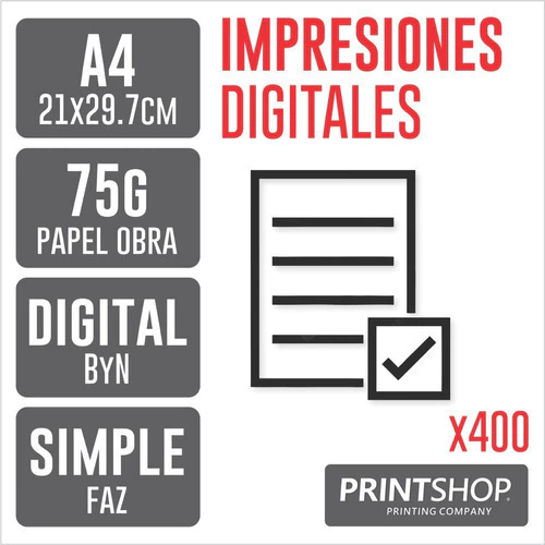 Impresiones Bajadas PrintShop ByN A4 75g x 400Unidades