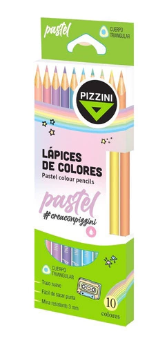 Lapices de Colores Pizzini Triangular x 10 Colores Pastel