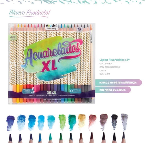 | Modelo | Lapices Mooving Coloring Acuarelables x 24 Colores + Pincel |