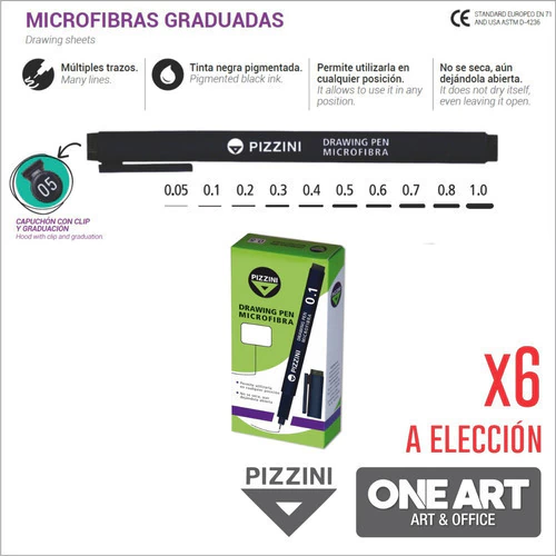 Microfibra Estilografo Pizzini Tinta Pigmentada 0.05 - 1.0mm x6 unidades