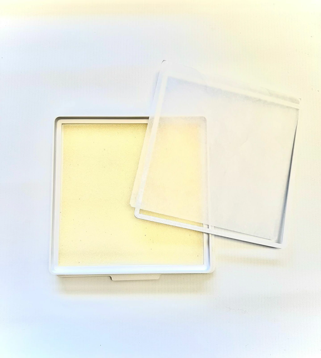- Compuesta por un recipiente con tapa, marco, hoja de papel manteca y esponja