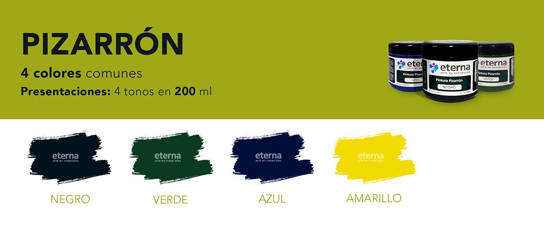 - > Pintura Para Pizarron Eterna 200ml Azul Verde Negro