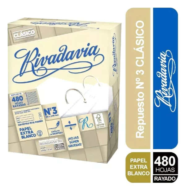 Repuesto Rivadavia N3 480 Hojas Clasico Rayado/Cuadriculado