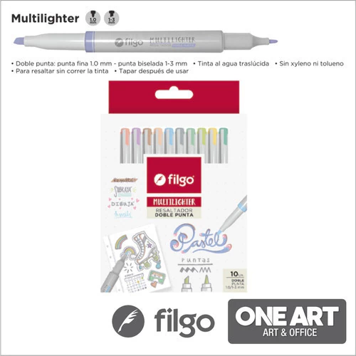 Resaltador Doble Punta Filgo Pastel x 10 Colores